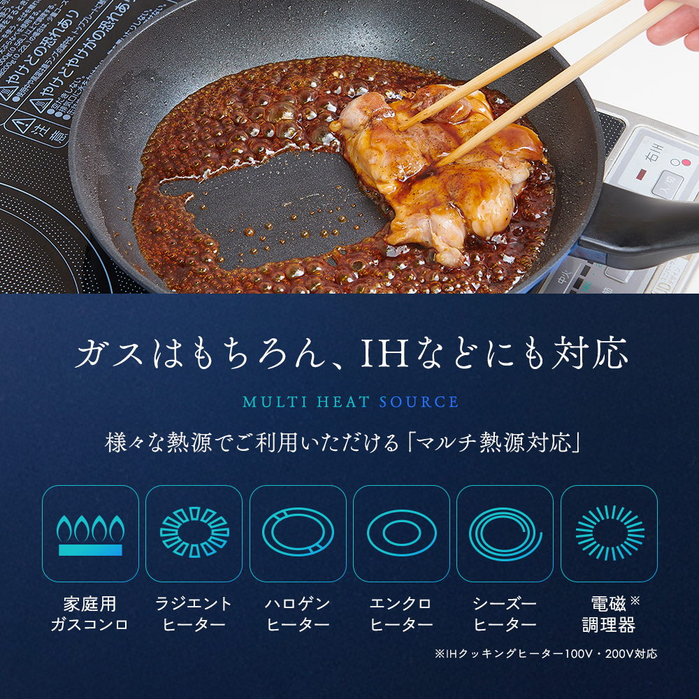 | 使用可能熱源 | 家庭用ガスコンロ・ラジエントヒーター・ハロゲンヒーター・エンクロヒーター・シーズーヒーター・電磁調理器(IHクッキングヒーター/100・200V対応) |