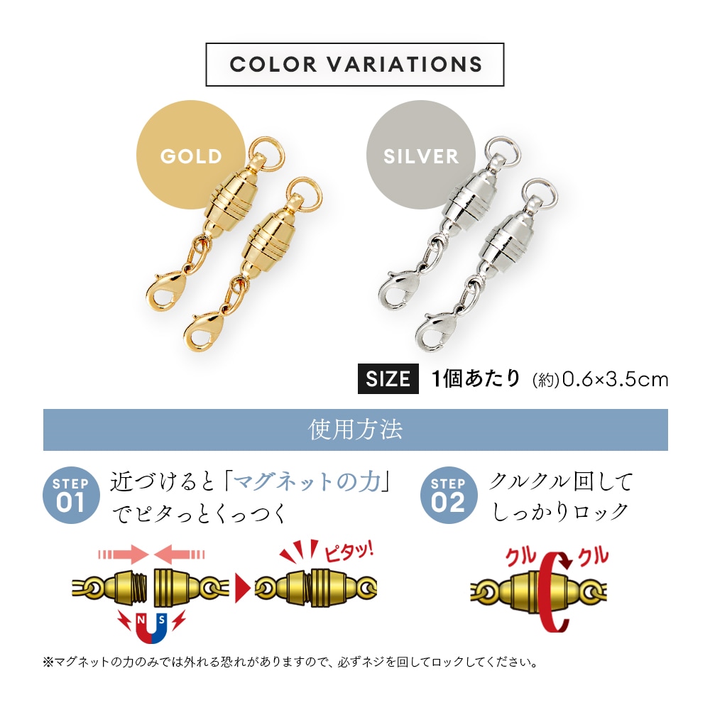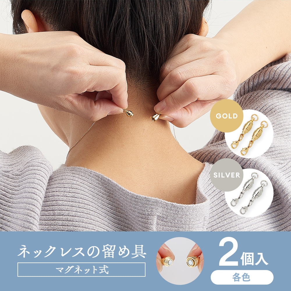 ネックレス留め具 マグネットクラスプ エンドパーツ アジャスター アタッチメント アクセサリー 留め金具 磁石 シルバー ゴールド 2セット ネックレス留め具 マグネットクラスプ ネックレス 留め具 留め金具 フック キャッチ マグネット式 クラスプ 磁石 エンドパーツ 装着 簡単 手軽 アクセサリー パーツ 届かない 留めれない 留められない 装着できない
