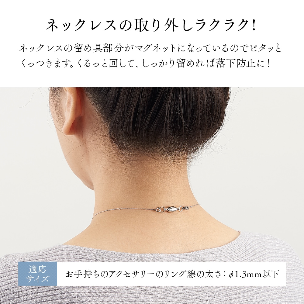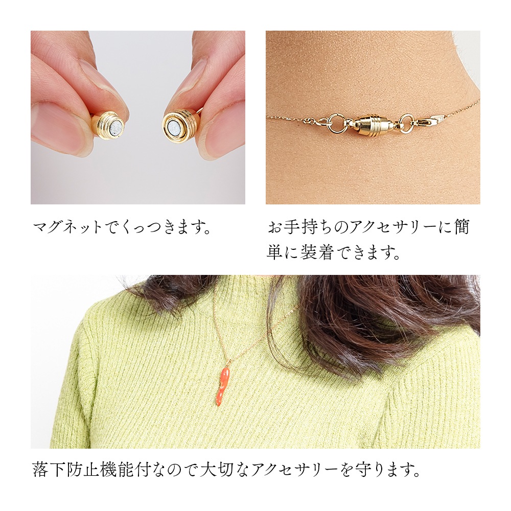 マグネットでネックレスの付け外しラクラク!ゴールドとシルバーの2カラーご用意しました。