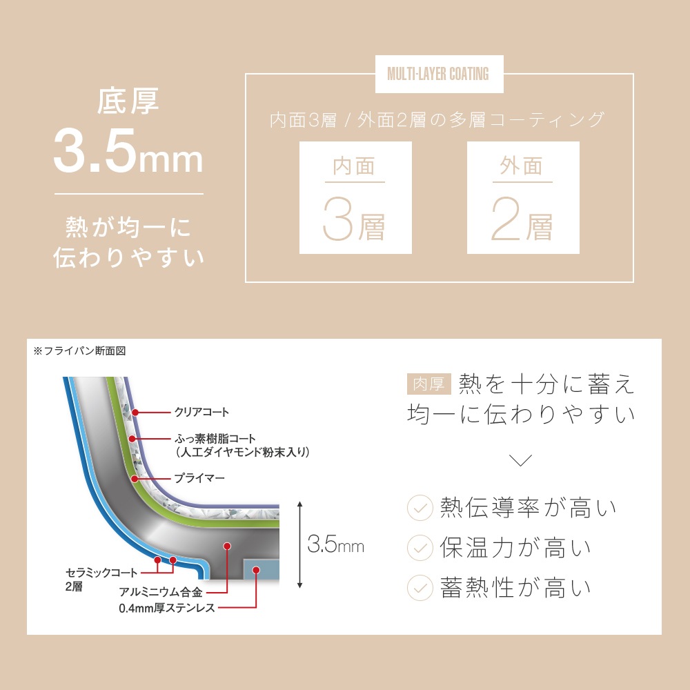 内面/ふっ素樹脂塗膜加工、外面/セラミック塗膜加工 |