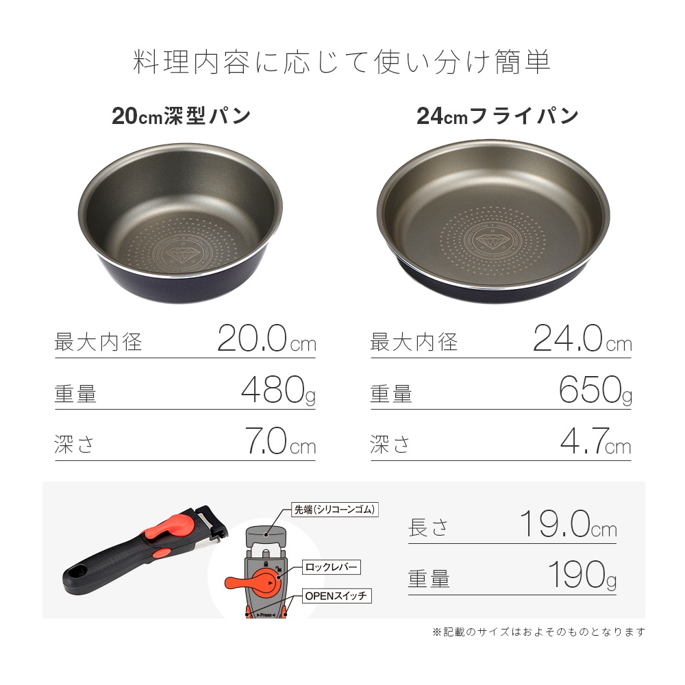 20cm深型パン・24cmフライパン・脱着式ハンドル |