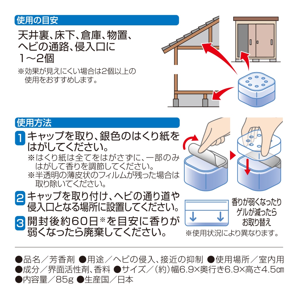 蛇避け 忌避剤 害虫駆除 蛇 ヘビ へび 侵入 阻止 防止 対策 玄関 屋根裏 床下 物置 置くだけ 簡単 日本製 殺虫剤不使用 天井裏 倉庫 通路 侵入口 芳香剤 室内