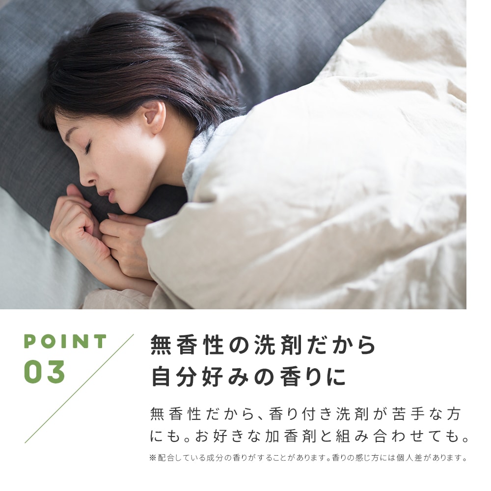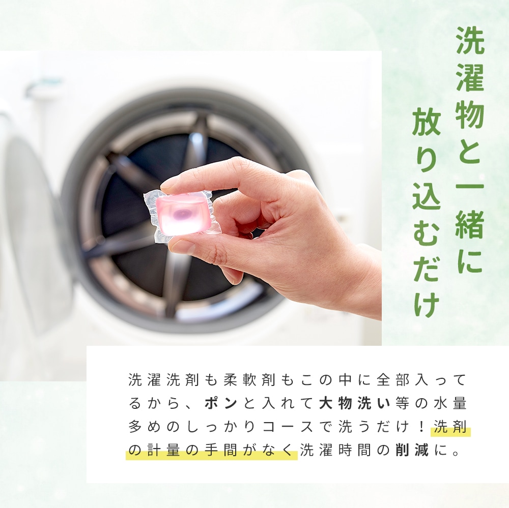 | 洗濯物と一緒に放り込むだけだから簡単!ふんわり柔らかな仕上がりに。タテ型・ドラム式洗濯機対応。柔軟剤入、抗菌・防臭(※1)、無香性(※2)、蛍光増白剤・漂白剤不使用 ※1. 全ての菌を抗菌するわけではありません。 ※2. 配合している成分の香りがすることがあります。香りの感じ方には個人差があります。 |