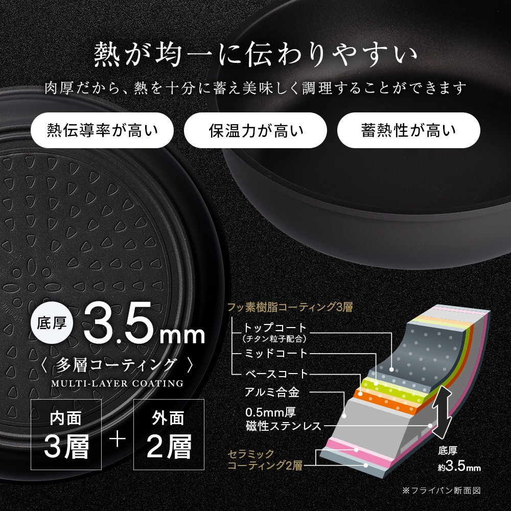 | ¥í¥±¥Ã¥È¤Ë»ÈÍѤµ¤ì¤Æ¤¤¤ë¥Á¥¿¥óγ»ÒÇ۹祳¡¼¥Æ¥£¥ó¥°¤À¤«¤é¡¢¶Ã°Û¤ÎÂÑËàÌ×À¥Æ¥¹¥È200Ëü²ó¥¯¥ê¥¢(¢¨1)¡£ÆâÌÌ3ÁØ¡¦³°ÌÌ2ÁؤοÁØ¥³¡¼¥È¤Ç¾Ç¤²ÉÕ¤¤Ë¤¯¤¯¤ª¼êÆþ¤ì¤â³Ú¡¹¡£Ç®ÊÑ·Á¤·¤Ë¤¯¤¤Äì¸ü3.5mm¤Î´è¾æ¤Ê¹½Â¤¤Ç¡¢Ç®¤ò½½Ê¬¤ËÃߤ¨Ç®¤¬¶Ñ°ì¤ËÅÁ¤ï¤ê¤ä¤¹¤¯¡¢ÈþÌ£¤·¤¯Ä´Íý¤¬¤Ç¤¤Þ¤¹¡£Ã¦Ãå¼°¥Ï¥ó¥É¥ë(¢¨2)¤À¤«¤éÇ®¡¹¤ÎÎÁÍý¤ò¤½¤Î¤Þ¤Þ¿©Âî¤Ø¡£¤ª»®¤Î¤è¤¦¤ËÀö¤¤¤ä¤¹¤¯¡¢¾Ê¥¹¥Ú¡¼¥¹¤Ë¼ýǼ¤Ç¤¤Þ¤¹¡£IHÂбþ¡¦¥ª¡¼¥Ö¥óÄ´Íý²Äǽ¡¦¿©Àöµ¡OK ¢¨1¡§200Ëü²ó»ÈÍѤǤ¤ë¤È¤¤¤¦¤³¤È¤Ç¤Ï¤¢¤ê¤Þ¤»¤ó¡£ ¢¨2¡§Ã¦Ãå¥Ï¥ó¥É¥ë¤ÏÊÌÇä¤Ç¤¹¡£ |