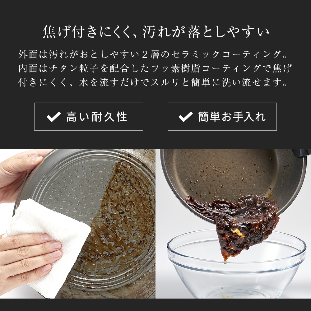 | ¥í¥±¥Ã¥È¤Ë»ÈÍѤµ¤ì¤Æ¤¤¤ë¥Á¥¿¥óγ»ÒÇ۹祳¡¼¥Æ¥£¥ó¥°¤À¤«¤é¡¢¶Ã°Û¤ÎÂÑËàÌ×À¥Æ¥¹¥È200Ëü²ó¥¯¥ê¥¢(¢¨1)¡£ÆâÌÌ3ÁØ¡¦³°ÌÌ2ÁؤοÁØ¥³¡¼¥È¤Ç¾Ç¤²ÉÕ¤¤Ë¤¯¤¯¤ª¼êÆþ¤ì¤â³Ú¡¹¡£Ç®ÊÑ·Á¤·¤Ë¤¯¤¤Äì¸ü3.5mm¤Î´è¾æ¤Ê¹½Â¤¤Ç¡¢Ç®¤ò½½Ê¬¤ËÃߤ¨Ç®¤¬¶Ñ°ì¤ËÅÁ¤ï¤ê¤ä¤¹¤¯¡¢ÈþÌ£¤·¤¯Ä´Íý¤¬¤Ç¤¤Þ¤¹¡£Ã¦Ãå¼°¥Ï¥ó¥É¥ë(¢¨2)¤À¤«¤éÇ®¡¹¤ÎÎÁÍý¤ò¤½¤Î¤Þ¤Þ¿©Âî¤Ø¡£¤ª»®¤Î¤è¤¦¤ËÀö¤¤¤ä¤¹¤¯¡¢¾Ê¥¹¥Ú¡¼¥¹¤Ë¼ýǼ¤Ç¤¤Þ¤¹¡£IHÂбþ¡¦¥ª¡¼¥Ö¥óÄ´Íý²Äǽ¡¦¿©Àöµ¡OK ¢¨1¡§200Ëü²ó»ÈÍѤǤ¤ë¤È¤¤¤¦¤³¤È¤Ç¤Ï¤¢¤ê¤Þ¤»¤ó¡£ ¢¨2¡§Ã¦Ãå¥Ï¥ó¥É¥ë¤ÏÊÌÇä¤Ç¤¹¡£ |