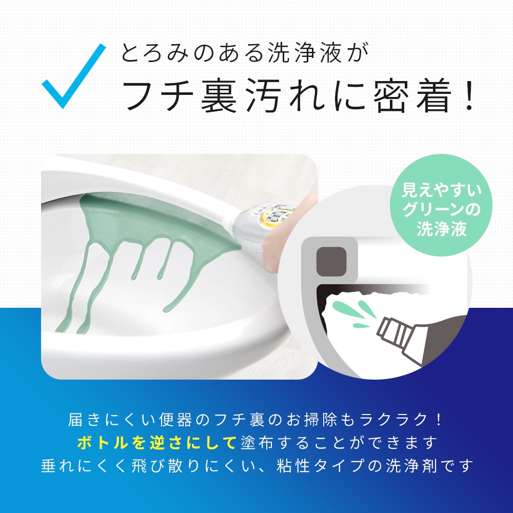| ハウスクリーニング屋さんが使っている、業務用トイレの黄ばみ・黒ずみ洗浄剤。ミクロ粒子配合の洗浄液が、汚れをこそぎ落とし徹底洗浄!これ1本で黄ばみ・黒ずみをWで撃退+除菌(※)!垂れにくく飛び散りにくい粘性タイプ。かけたところが分かりやすいグリーンの洗浄液。フローラルグリーンの香り。※全ての菌を除菌するわけではありません。 |
