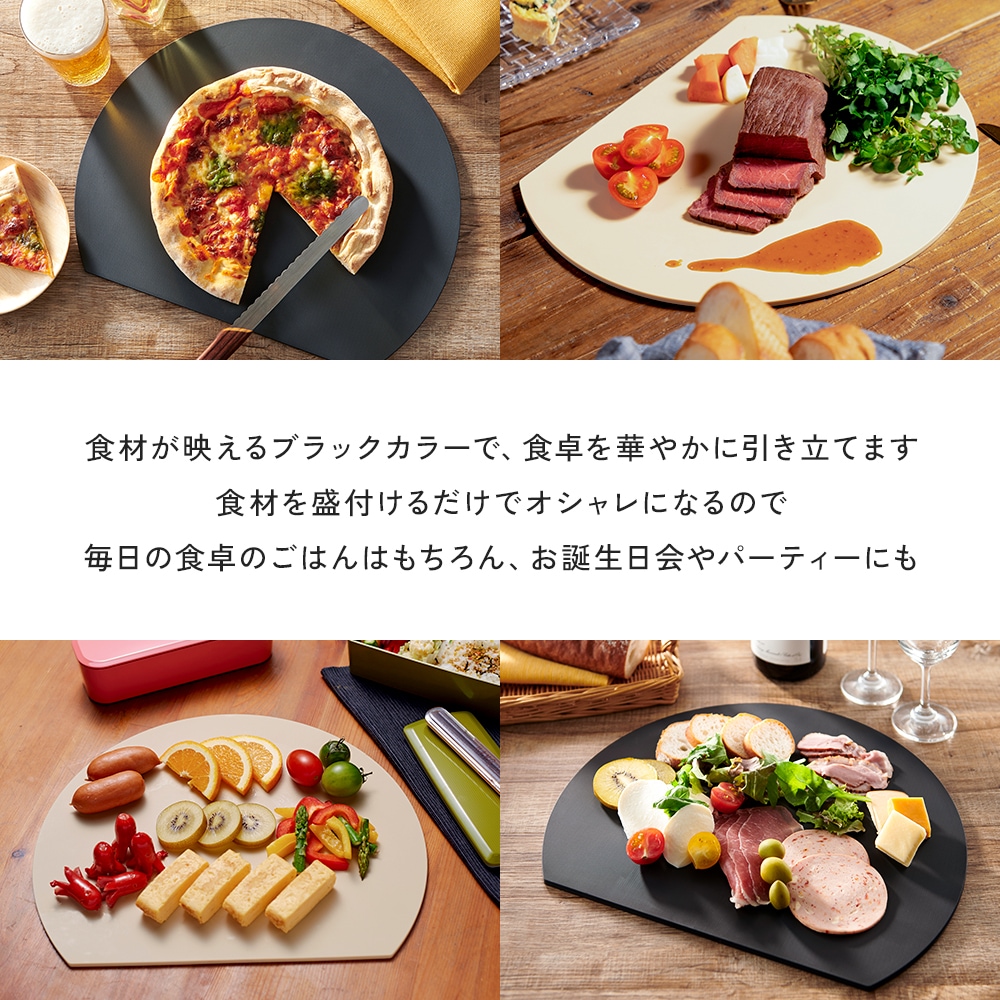 丸いまな板 34cm 日本製 かまぼこ型 丸型 D型 大きめ ベージュ ブラック おしゃれ 半円 ゴムまな板 エラストマー 円形 丸型 食洗機対応 耐熱 カッティングボード お皿 プレート まないた ノンスリップ 抗菌 衛生的