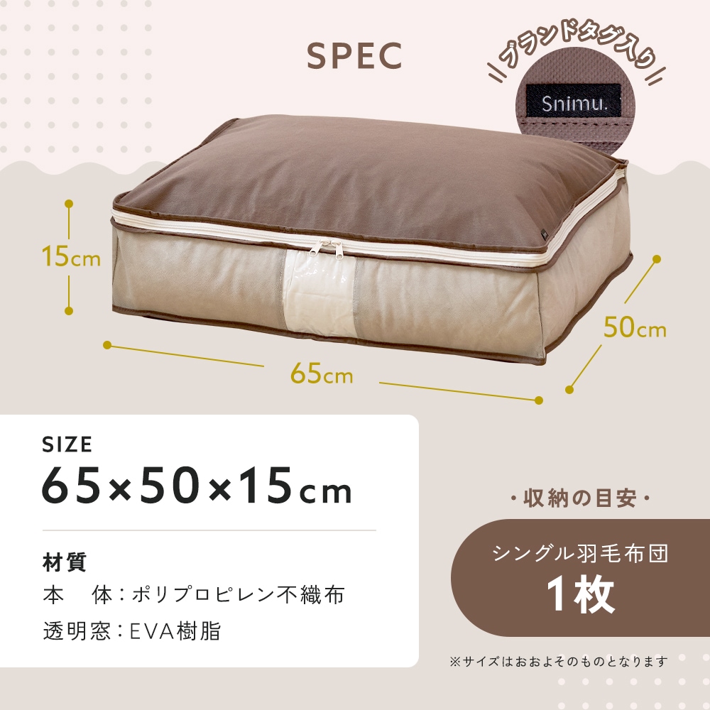 布団収納袋 シングル羽毛布団用 収納ケース 透明窓 シンプル おしゃれ クローゼット Snimu 炭入り 3層構造 不織布 ふとん収納 押し入れ すき間収納 グレージュ 収納ボックス ソフトケース インテリア シックカラー 省スペース インテリアに馴染む