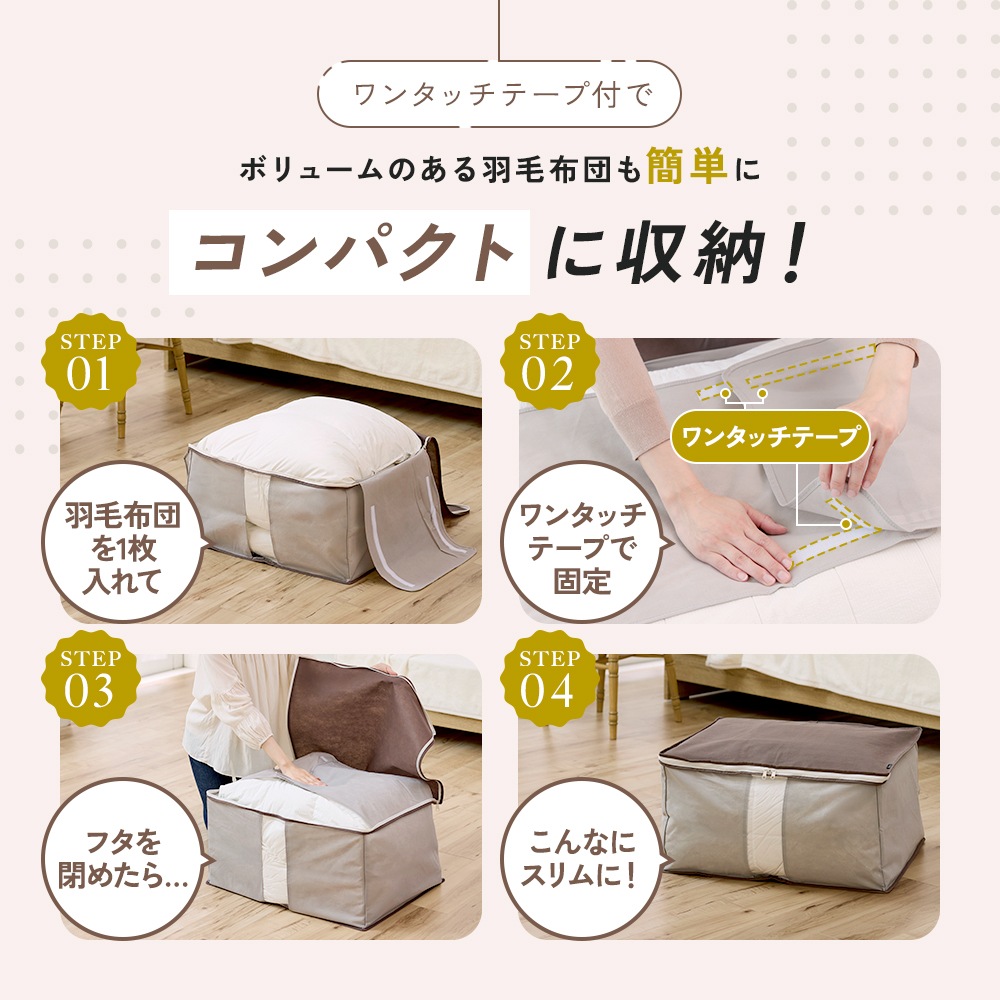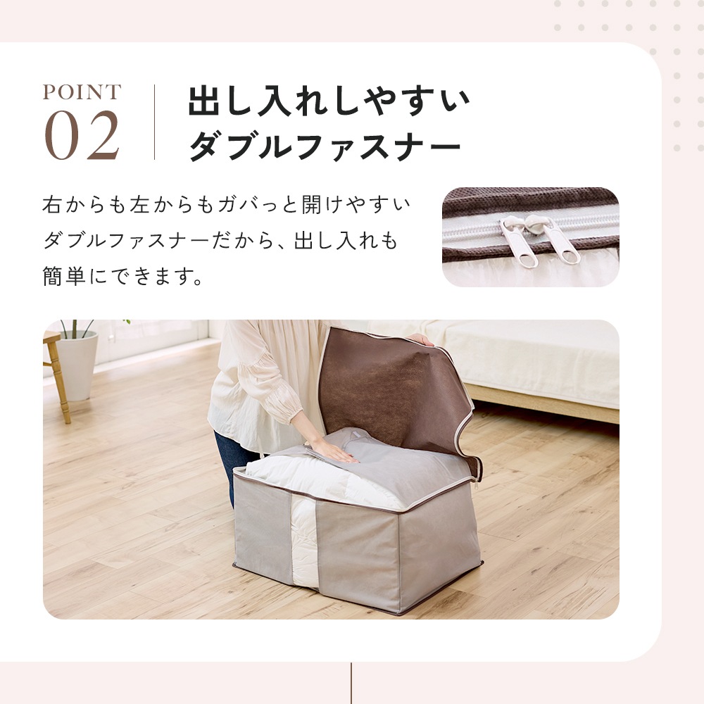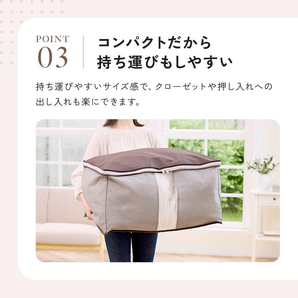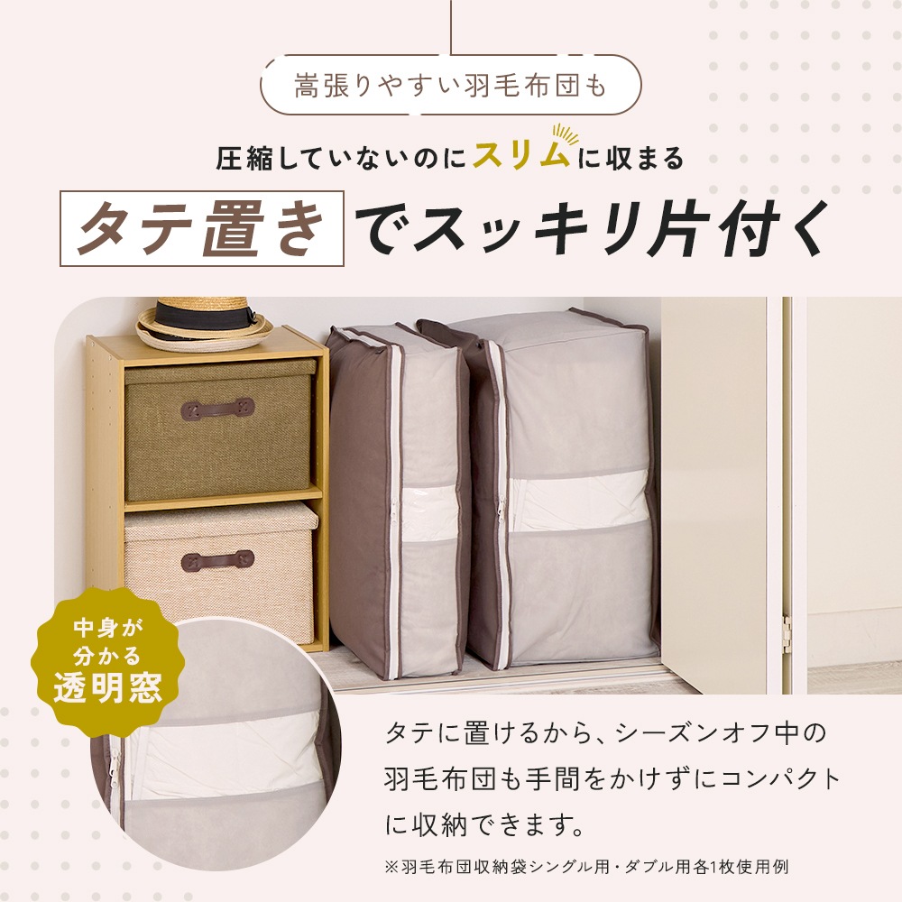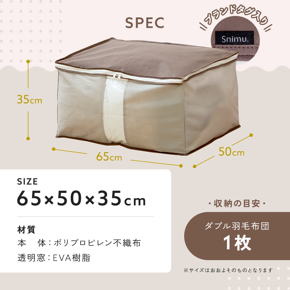 布団収納袋 ダブル羽毛布団用 収納ケース 透明窓 シンプル おしゃれ クローゼット Snimu 炭入り 3層構造 不織布 ふとん収納 押し入れ すき間収納 グレージュ 収納ボックス ソフトケース インテリア シックカラー 省スペース インテリアに馴染む