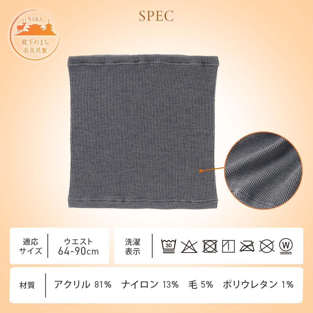 | 保温性の高い『ホットレイ(R)』を使用した腹巻き。遠赤外線効果でじんわりあたたかく、お腹から腰までやさしく包み込みます。伸びがよく、ゆったりとしたフィット感。薄手なので重ね着しても着ぶくれしにくく、動きやすくて快適です。奈良県製。※ホットレイ(R)は三山株式会社の登録商標です。 |