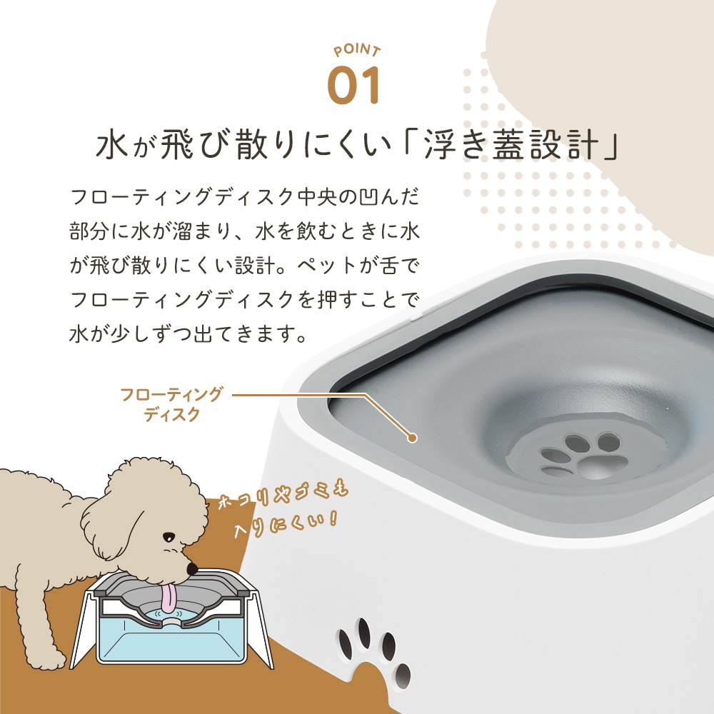 | °û¤ß¿å¤¬Èô¤Ó»¶¤ê¤Ë¤¯¤¯¡¢¤³¤Ü¤ì¤Ë¤¯¤¤¥Ú¥Ã¥ÈÍѤεë¿å´ï¡£¿å¤ËÉ⤫¤Ö¡ÖÉ⤳¸À߷ספˤè¤ê¡¢¿å¤ò°û¤àºÝ¤ÎÈô¤Ó»¶¤ê¤òËɤ®¡¢¥Û¥³¥ê¤ä¥´¥ß¤Îº®Æþ¤âÍÞ¤¨¤Þ¤¹¡£¾¯¤·¤º¤Ä¿å¤¬½Ð¤ë¤³¤È¤Ç¡¢¥Ú¥Ã¥È¤Î¸ý¸µ¤¬Ç¨¤ì¤Ë¤¯¤¤»ÅÍÍ¡£¤¹¤Ù¤ê»ß¤á¥Ñ¥Ã¥ÉÉÕ¤¡£ |